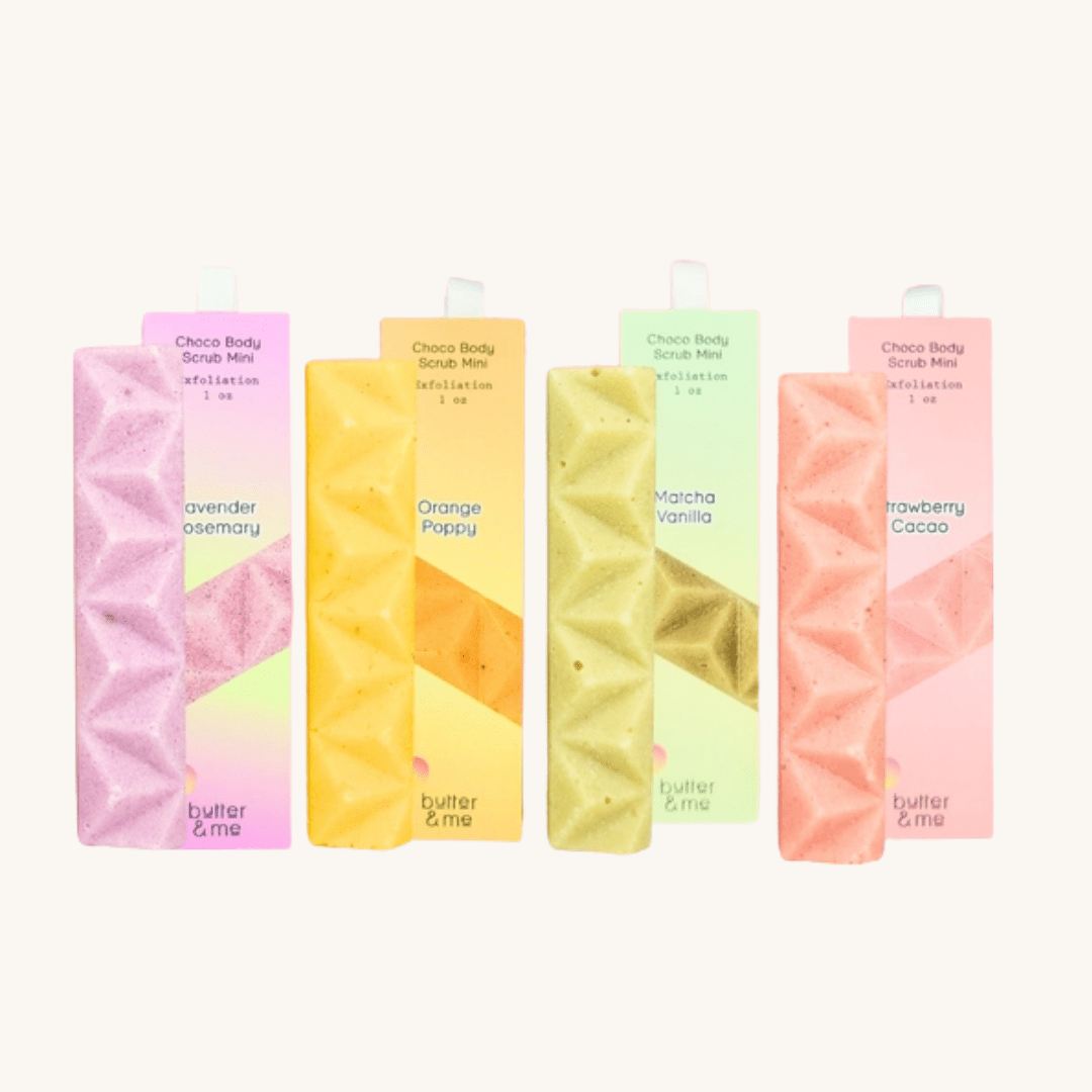 Free from microplastics, harsh abrasives, and synthetic additives, the break-apart format ensures clean, single-use portions that stay fresh and mess-free. Choose individual bars or the complete raw sugar body scrub gift set with four scents: Matcha Vanilla, Strawberry Cacao, Orange Poppy, and Lavender Rosemary.