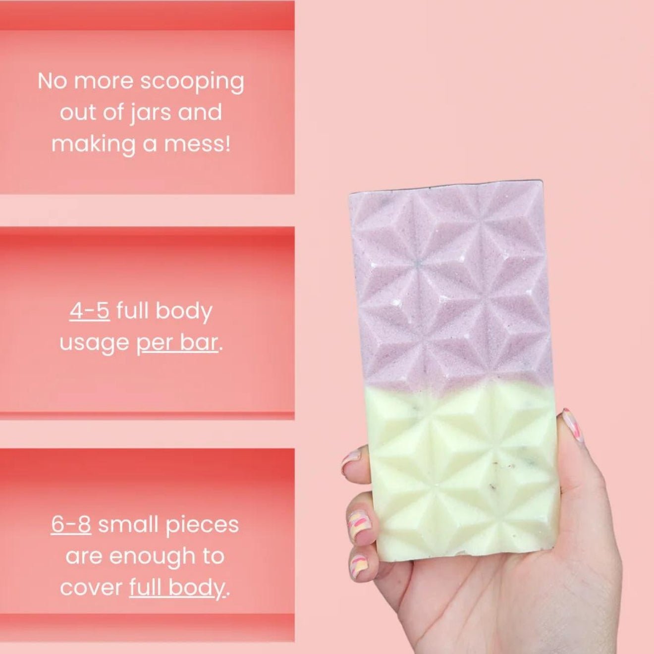Want to try a smaller size first? Explore our Raw Sugar Body Scrub Gift Set or Singles for a mini version of the chocolate bar exfoliator.